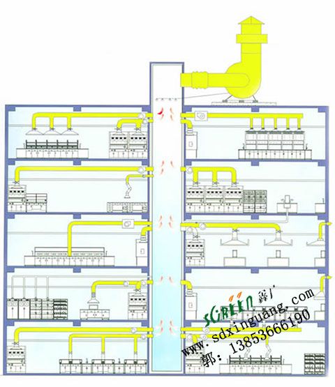 排風系統的通風機一般要安裝到屋頂上,這樣既減少了使用面積,還使室內的排風管道處于負壓狀態,以免有害物質由于管道的腐蝕或損壞。此外,通風機安裝到屋頂上,檢修方便,噪音小。